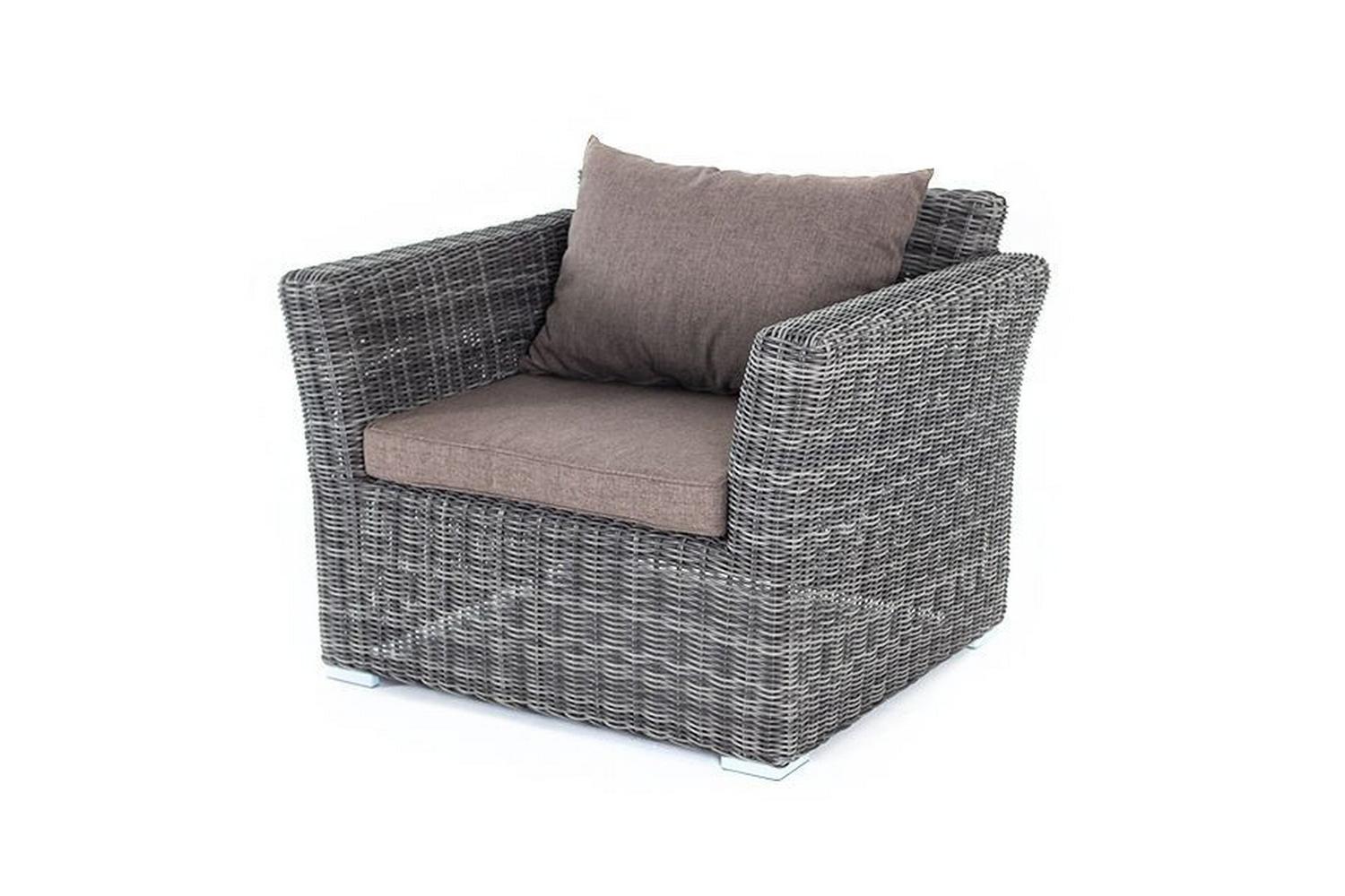 Кресло 4SiS Капучино серого цвета одна из таких моделей садовой мебели. Форма кресла квадратная, у него широкие подлокотники и небольшая спинка, а размеры 104х81,5х86,5 см. максимальная нагрузка на одно такое кресло – 150 кг, при его сравнительно небольшом весе в 21 кг. Добиться прочности и легкости конструкции позволяют материалы, из которых состоит кресло. Каркас состоит из алюминия, который покрыт искусственным ротангом, материалом, имитирующий переплетение настоящего дерева, но гораздо прочнее и долговечнее.