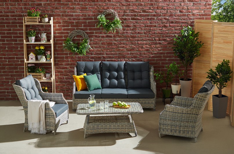 У нас вы можете приобрести комплект подушек, предназначенных для садовой мебели, в комплекте находится пять подушек для сидения размером 60 на 64 см и толщиной 10 см, три подушки для спины размером 61 на 70 см и толщиной 8 см, а также две подушки для спины размером 56 на 70 см и толщиной 8 см. У них тёмно-серый цвет, изготовлены такие подушки из полиэстера.