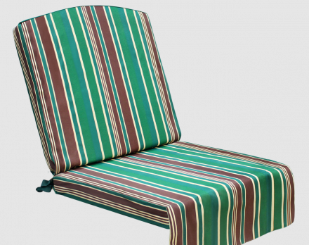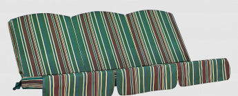 Вы можете приобрести подушку-кресло, предназначенную для трёхместных садовых качелей, выполнена такая подушка в зелёном цвете, у неё расцветка в полоску. Общие размеры подушки составляют 55 х 55 х 55 см, а плотность ткани 220 г на квадратный метр, изготовлена данная подушка из очень прочной ткани с водоотталкивающей пропиткой. В такой ткани сочетается натуральное и синтетическое сырьё. Наполнена подушка при помощи холлофайбера 80 мм. Предназначена для диаметра трубы 63 мм.